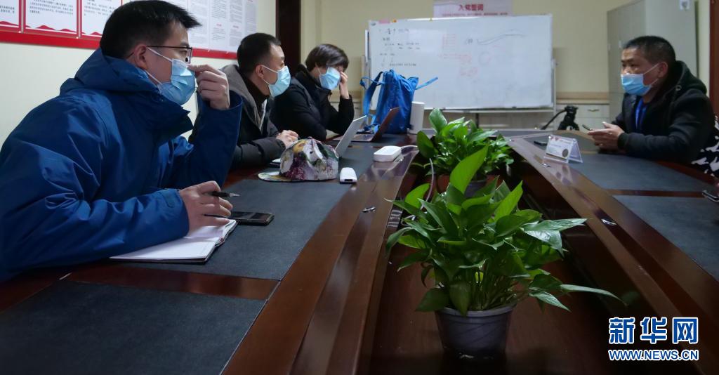 吳國良(右二)與扶貧干部交流工作進(jìn)展(資料照片)。新華社發(fā)