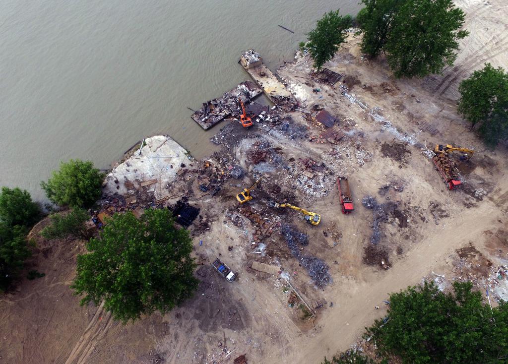 2016年5月18日,工作人員在武漢余家頭非法碼頭整治清理現(xiàn)場進行收尾工作。新華社記者 程敏 攝